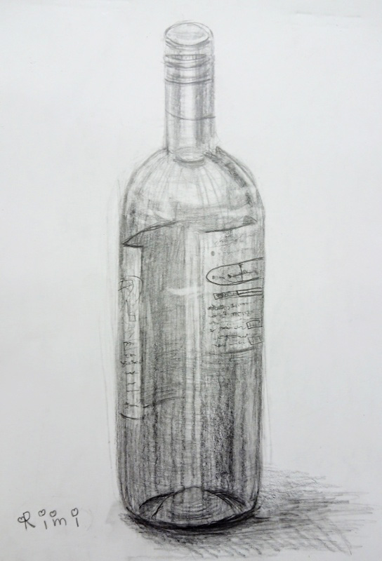 《ワインボトルのデッサン》 鉛筆/ケント紙 A4(29.7㎝×21.0㎝)
