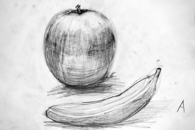 《りんごとバナナのデッサン》 鉛筆/ケント紙 A4(21.0㎝×29.7㎝)