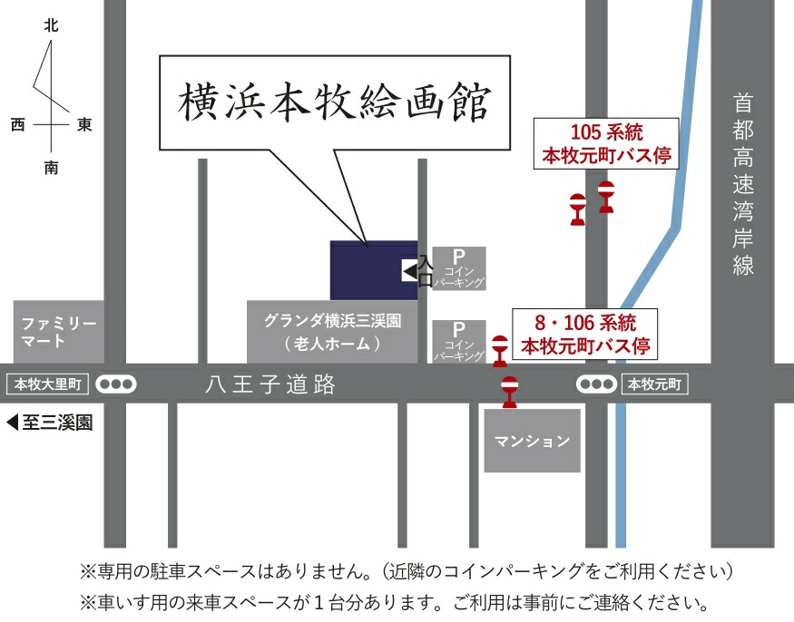 終了しました。 開催場所・会期 【開催場所】横浜本牧絵画館 【会期】2021.8.7 sat. ~ 2021.8.22 sun. 【開館時間】10:00~17:00(入館は16:30まで) 【休館日】火曜日(8/10、8/17 ) 【観覧料】 一般/200円 小学生~高校生/100円 小学生未満/無料 https://www.yh-g.org/ イベント各種 小さな画家によるクロッキープレゼント 黒猫の美術教室では、積極的にクロッキー(速写)の時間を作っております。短時間に形を捉えるのは難しいのですが、とても上手な子も多いです。 実際にお客様に美術に触れていただく機会として黒猫の美術教室の生徒が、お客様をモデルに、その場でクロッキーを描きプレゼントさせていただくイベントを開催致します。 ご希望の方は、スタッフにお気軽にお声がけ下さい。 クロッキーを描いてくれる生徒はベレー帽が目印です 【クロッキーイベント日時】 8月15日(日) 13:00~15:00 ※お一人様10分程度 ※先着順 アニメーション上映 黒猫の美術教室生徒による黒猫のアニメーション、展示作品の制作過程のアニメーションの上映を行います。二本立てのアニメーションは会期中にプロジェクターで常に流しておりますので、どうぞゆっくりとご覧下さい。 ※10分前後の動画の予定です。 ※混雑具合によりお待ちいただく場合がございます。 【アニメーションイベント日時】常時開催 アクセス 公共交通機関からのアクセス 【元町・中華街駅】より (東急東横線・みなとみらい線) ホーム横浜寄りを上り、4番出口右方「山下町」バス停から横浜市営バス8系統「本牧車庫前」行「本牧元町」下車 ※所要約30分・徒歩1分 【横浜駅】より (JR各線、東急東横線、京浜急行、相鉄線、横浜市営地下鉄) 東口バスターミナルから横浜市営バス8系統・105系統「本牧車庫前」行「本牧元町」下車 ※所要約40分・徒歩1分 【桜木町駅】より (JR京浜東北線、横浜市営地下鉄) 横浜市営バス11番乗場から105・106系統、又は2番乗り場から8系統「本牧車庫前」行「本牧元町」下車 ※所要約30分・徒歩1分 【磯子・根岸方面】より 横浜市営バス58・101系統「和田山口」で下車、道の反対側の横浜市営バス4番乗場8・106・105系統 「本牧車庫前」行「本牧元町」下車 ※「和田山口」から所要約10分・徒歩1分 トップページへ戻る